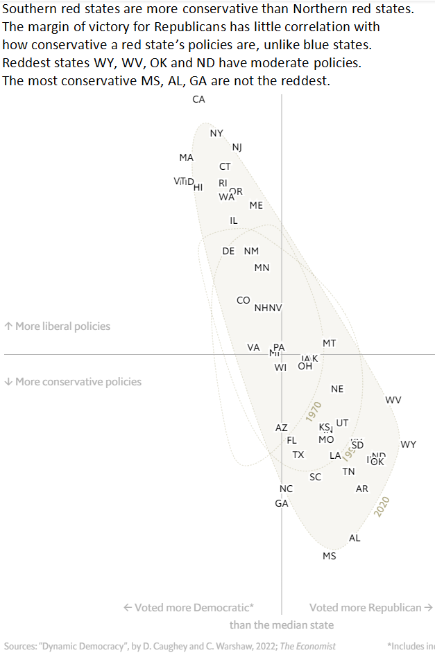 In 2022, The Economist published an analysis, by some liberal professors, of the conservatism of state law: