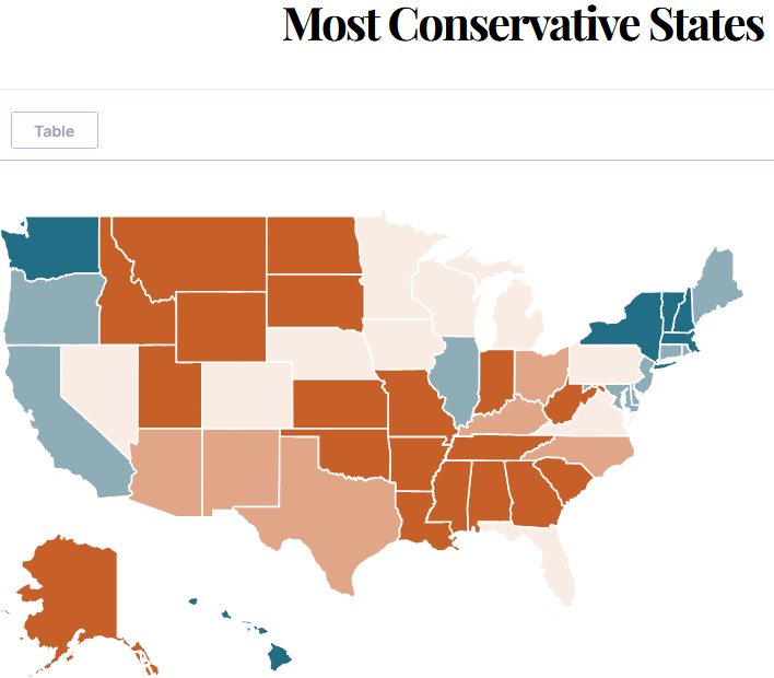 What's the most conservative state - the reddest red state? Compare here.