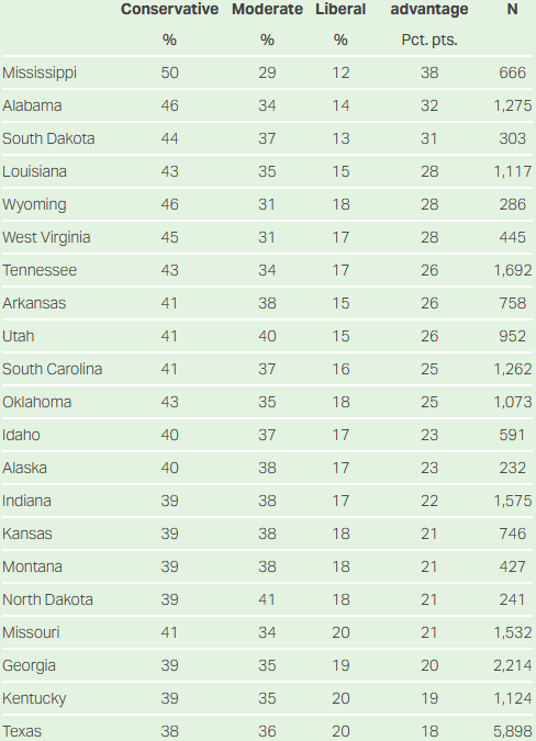 Other perspectives on how conservative a state is: